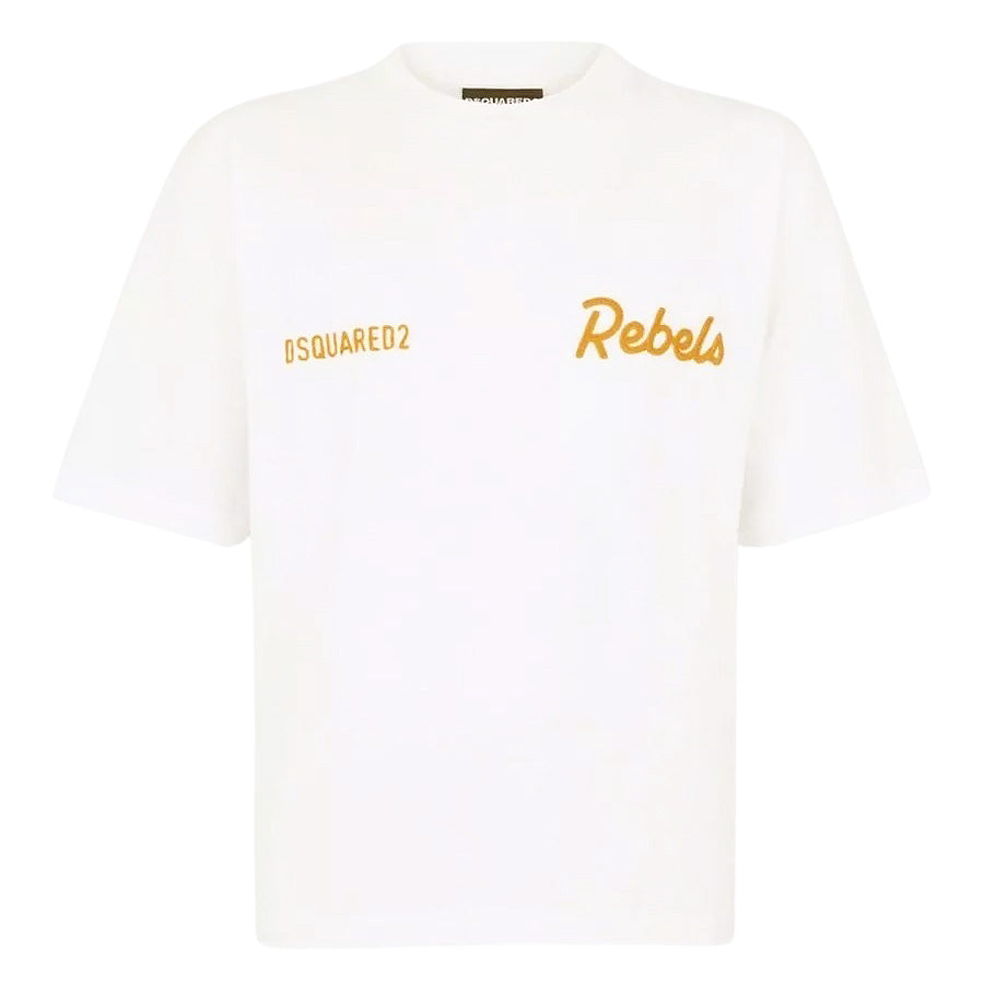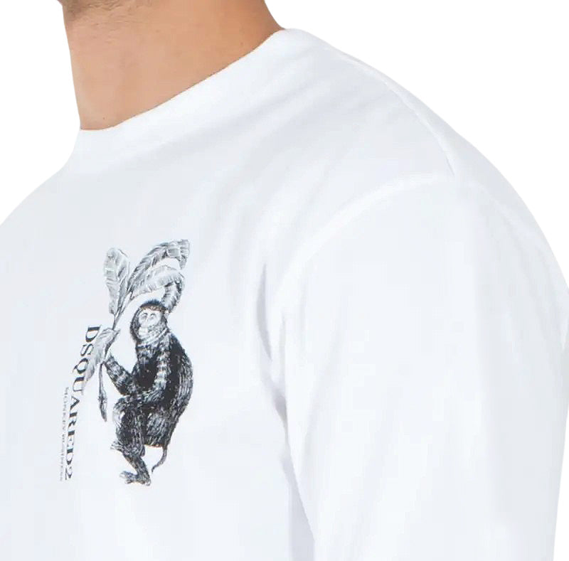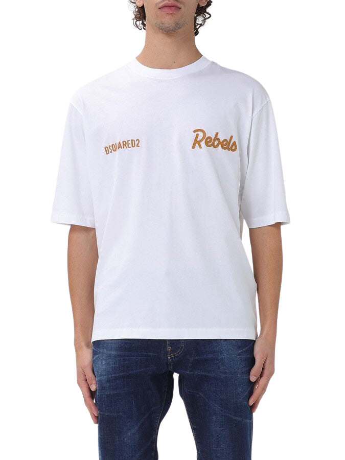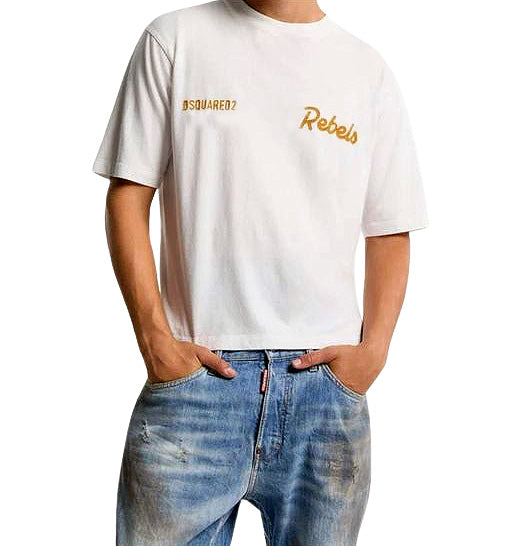Men's John Richmond - "YELDE" White Silk Shirt with Black Floral Arm Detail