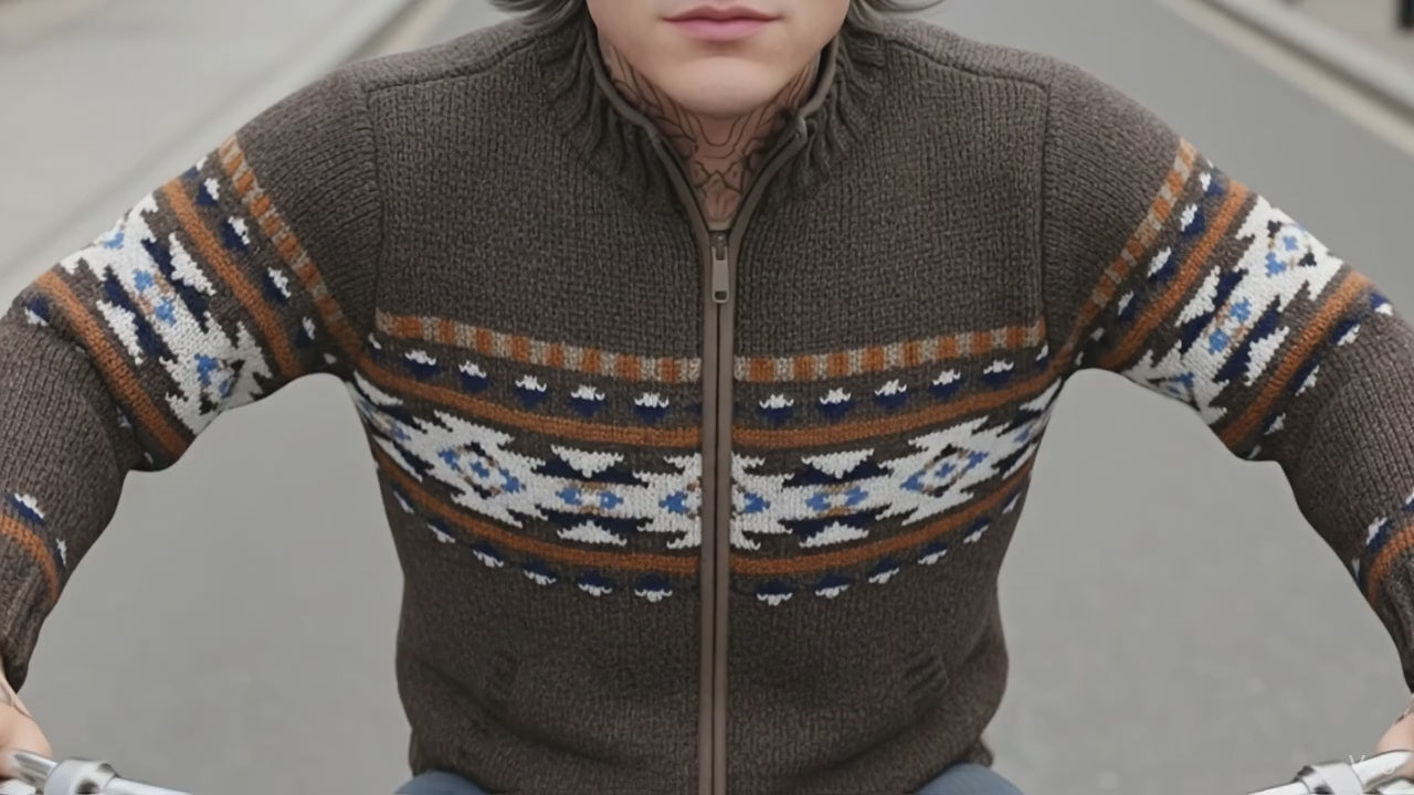 LOST HORIZONS - "AUSTIN" Wool Sweater with Fleece Lining in Dark Natural